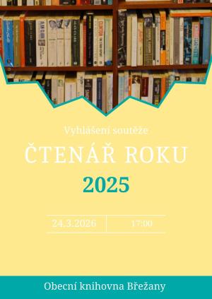 Obecní knihovna Břežany vyhlásí výsledky soutěže Čtenář roku 2025 - čtenář s nejvyšším počtem vypůjčených knih, a to jak v kategorii děti, tak dospělí.