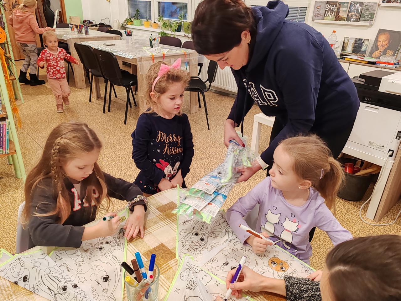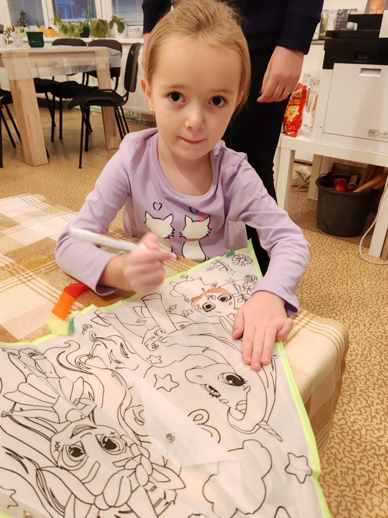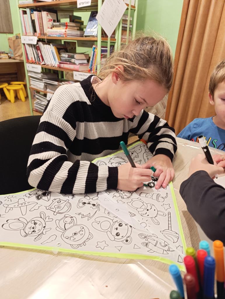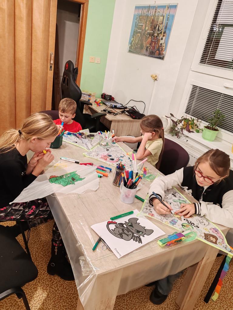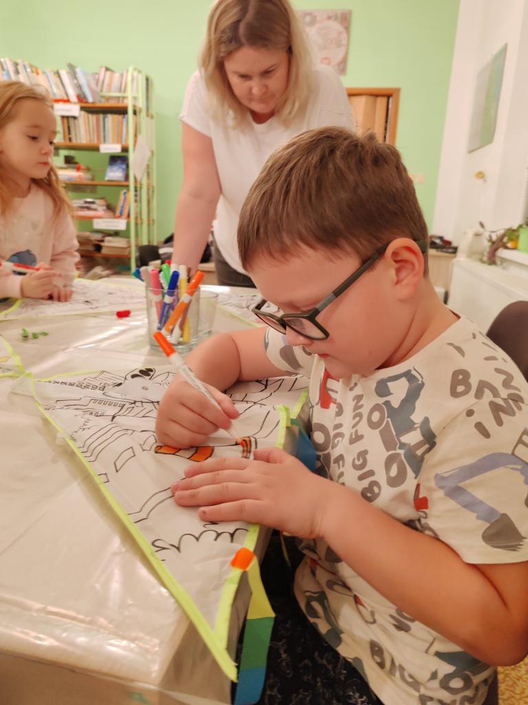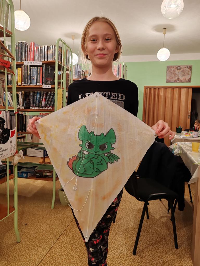 Malování létajícího draka fixami na textil. Akci podpořil SKIP ČR - Velká Morava.